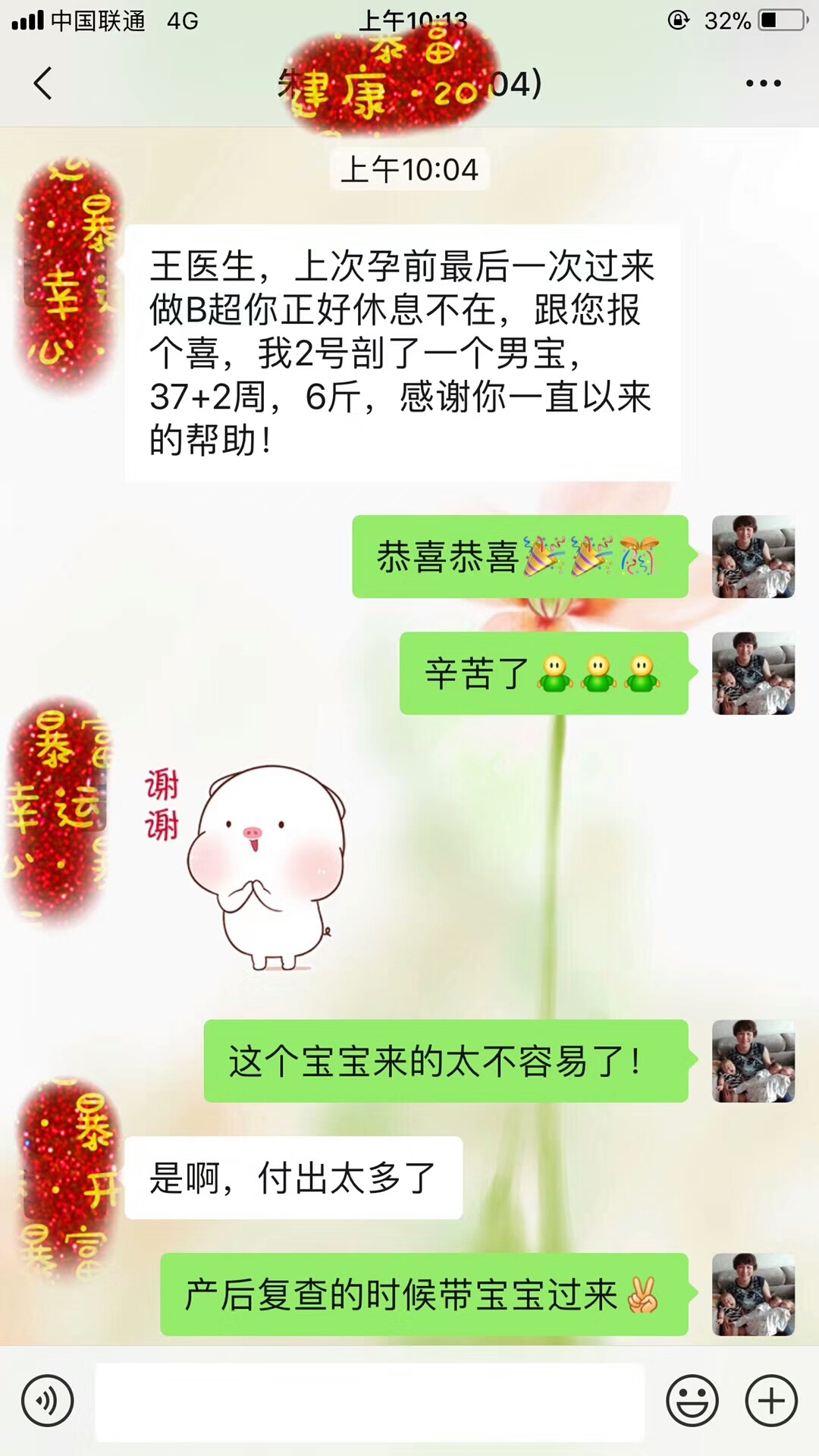移植、反复出血、上蛋白、上瑞白、打肝素、用间苯……在付教授的指导下,一路打怪升级,终于修成正果收到喜报,除了开心更多的是感慨,做为生殖不孕科医生,需要做的不仅仅是帮亲们怀的上,还要保得住,这才是一个完美的过程,累但是享受着。——百佳 王利萍主任