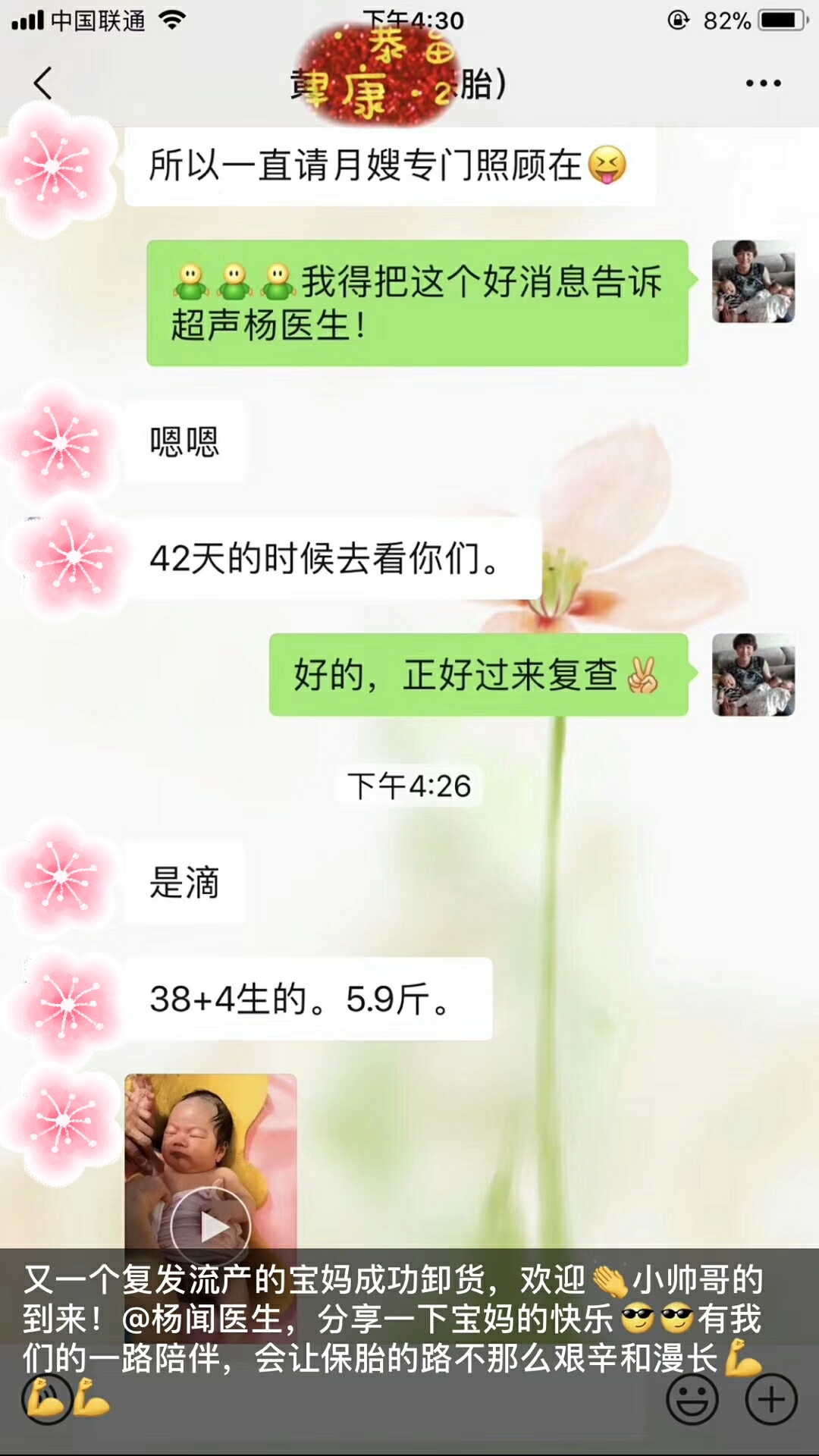 73年的江女士试管移植后在王利萍主任这里保胎安胎,肝素、阿司匹林、美卓乐、格华止、达芙通、多力姆、环孢素、间苯三酚……终于胎心出来了!NT过了!无创过了!大排畸过了!宝宝现在28周,各项指标安好,已经安全转入产科待产,期待宝宝平安降生、顺利成长!