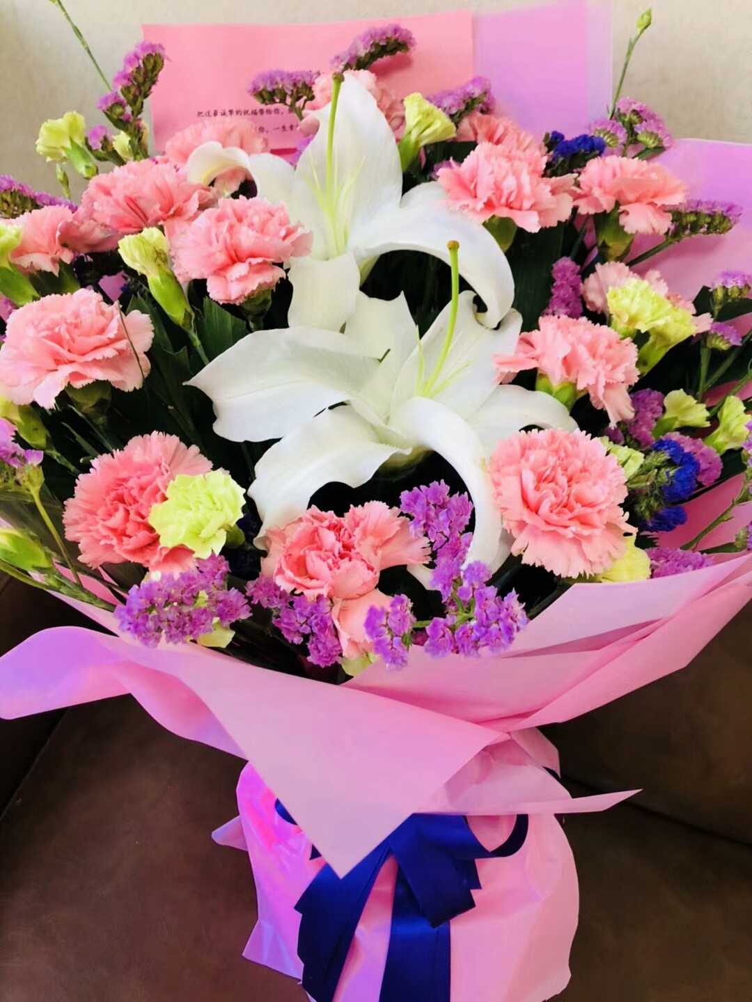 宝妈带着一大束鲜花来看主任,办公室满满的百合香和欢声笑语~